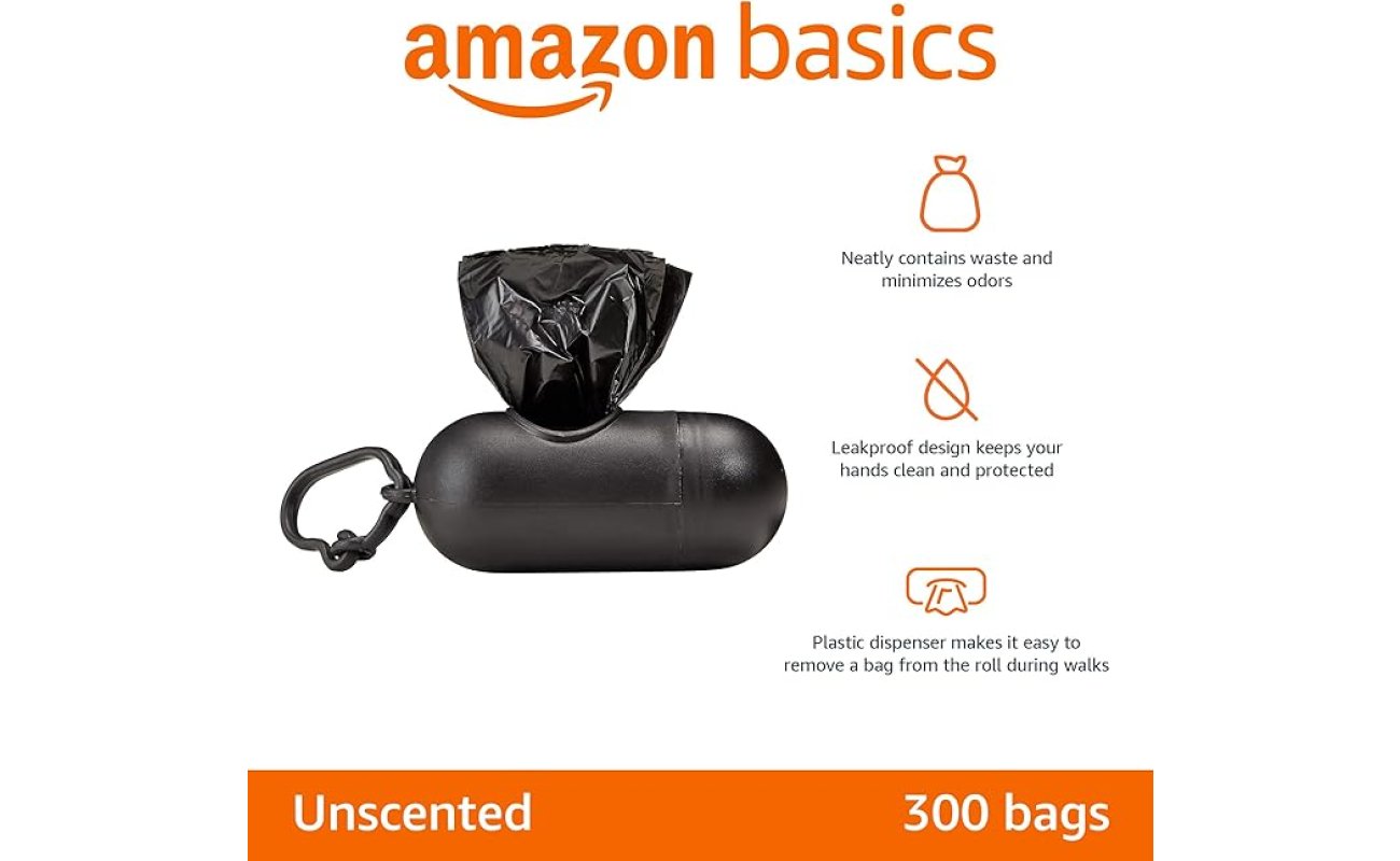 Amazon Basics Dog Poop Bags with Dispenser, 300 Count, Unscented