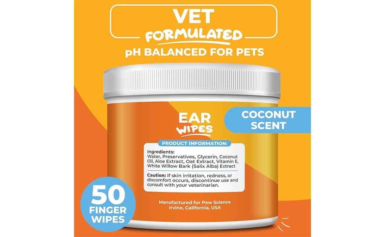 Dog Ear Cleaner Wipes – Finger Wipes for Dogs & Cats – Cleaning (Coconut)