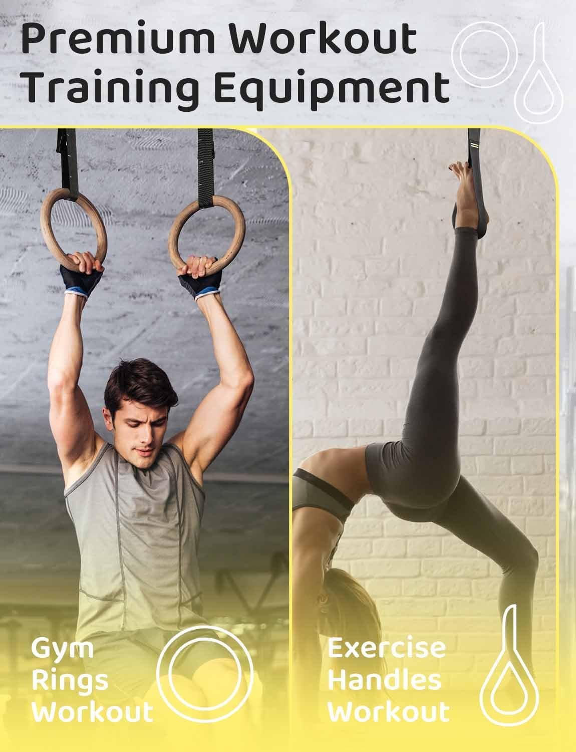 - (Include Door Anchor, Foot Straps More Workout Options) GHB gymnastics rings set includes a door attachment that your exercise rings to attach to a solid door. Foot straps allow the lower body to engage in Abdominal training and core workout