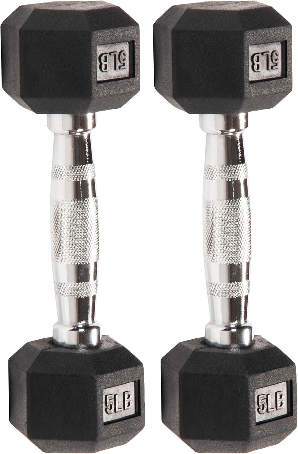 - Signature Fitness Rubber Encased Hex Dumbbell, 5LB Pair
