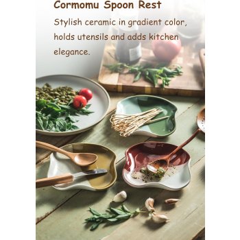 Spoon Rest for Stove Top, Spoon Holder for Kitchen Counter, Spatula Holder, Ceramic Coffee Spoon Rest, Gradient Brown, 5.12″