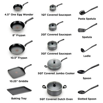 T-fal Easy Care, 20 Piece Non-Stick Pots and Pans Cookware Set, Grey