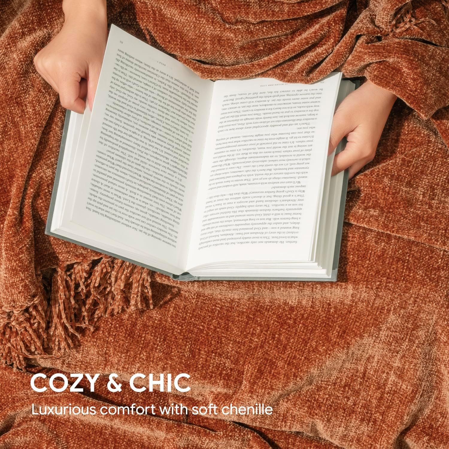 RECYCO Throw Blanket Soft Cozy Chenille Throw Blanket with Fringe Tassel for Couch Sofa Chair Bed Living Room Gift (Rust, 50″ x 60″)