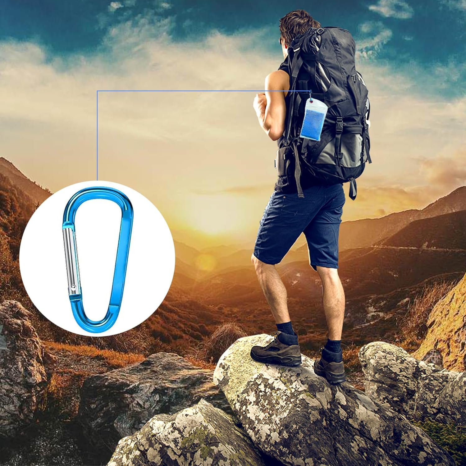 - CARRYING POUCH WITH CARABINER CLIP:With the waterproof plastic pouch, it’s easy to carry the chilly towel on a rock climb, golf trip, corssfit training, etc. The reusable pouch is friendly to earth and saves more space than a bottle. The storage pouch comes with carabiner clips of vibrant colors that match the towel, making it a great gift for all ages. The clip makes it convenient to attach the cooling towel to the belt of sports bag and traveling backpack.