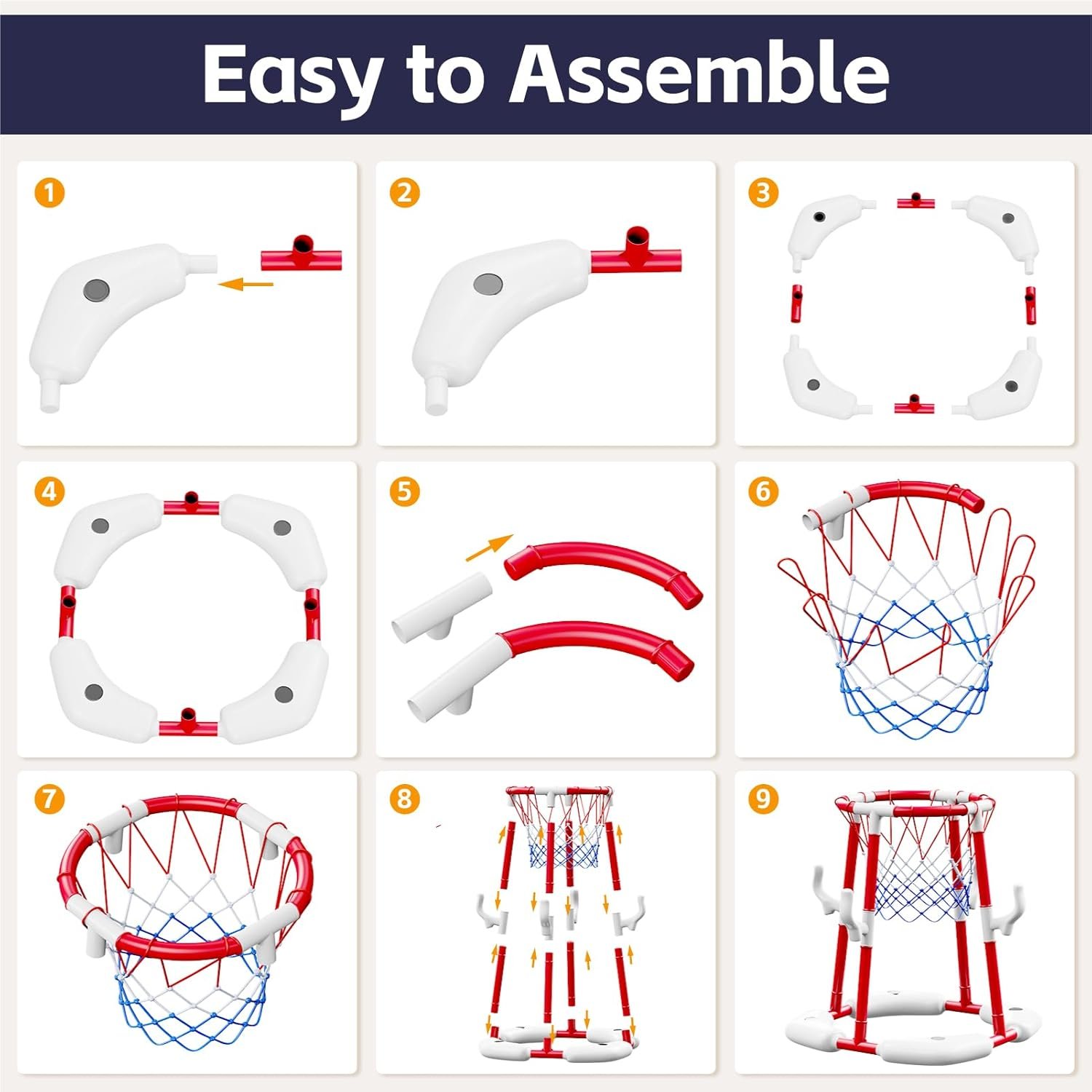 - Easy to assemble: Constructed from durable materials designed for safe and sturdy playtime experiences. The kids’ pool basketball set is easy to assemble without any tools required—ensuring hours of laughter-filled fun.