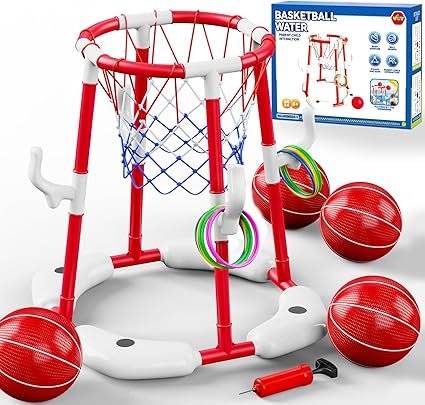 - Summer Pool Toys: Dive into endless water enjoyment this summer with the pool basketball hoop. This pool basketball set includ 1 basketball hoop and ball net, 4 basketballs and 1 ball pump, 12 toss rings. Summer water pool basketball game for toddler, kids, teen, adults ages 3+.