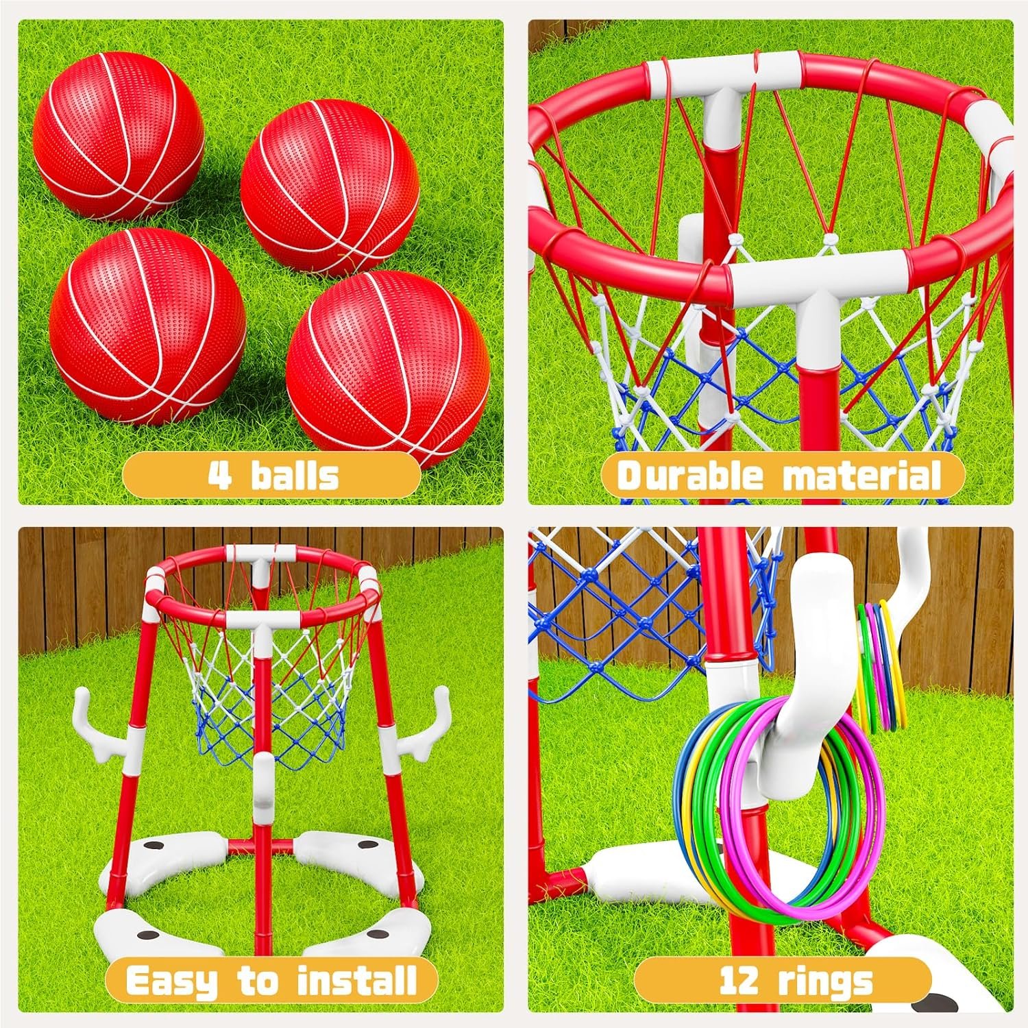 VGY Pool Basketball Hoop 2-in-1 with 4 Balls, 12 Rings & Pump